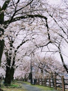 小雨が降ってきたので、午後の露地の仕事はお休みして、市内の勝沼ぶどう郷駅に、主人とお花見に行きました。勝沼ぶどう郷駅には、『甚六桜』と呼ばれる有名な桜並木があります。他のさくらよりも、花弁が大きい感じがして美しい。私はとても好きです。昨日は、まだ五分咲きくらいだったでしょうか。小雨が降ったりやんだりの中、平日だったせいもありお花見客もまばらでした。静かな中で綺麗なさくらを見られてよかった。親友と一緒に、ここに来たときのことも思い出しました。